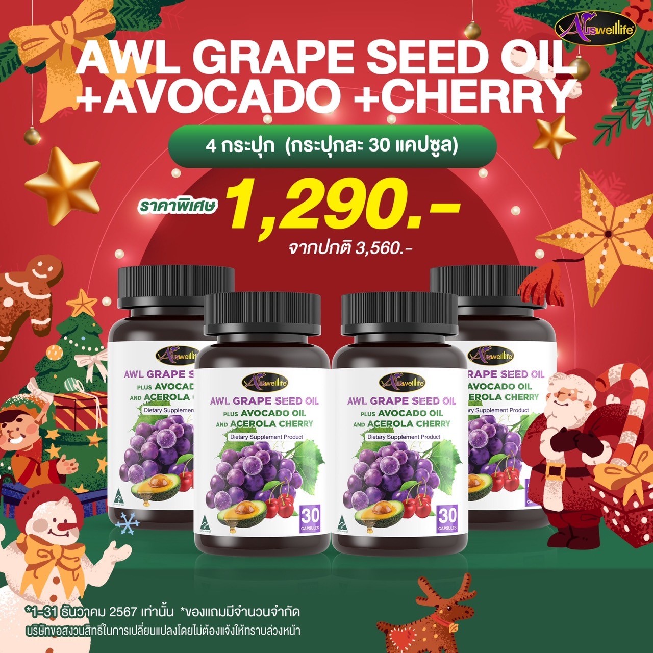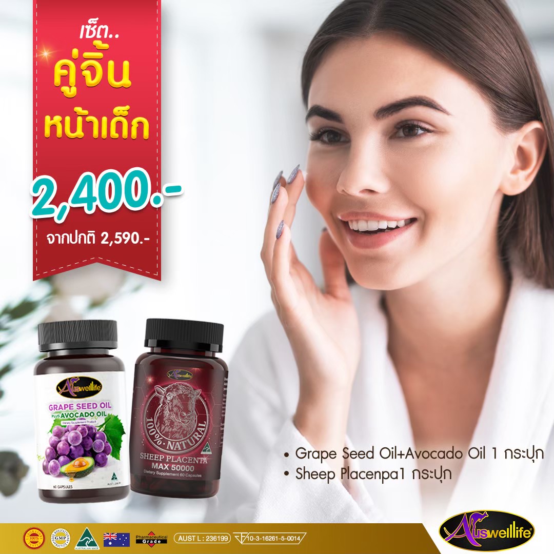 Auswelllife Grape Seed สารสกัดจากเมล็ดองุ่น เป็นสารกลุ่มไบโอฟลาโวนอยด์ OPC (Oligomeric Proanthocyanidins) มีคุณสมบัติ จับกับอนุมูลอิสระที่มาทำลายผนังหลอดเลือด เป็นสารต้านอนุมูลอิสระที่แรง ช่วยยับยั้งเอนไซม์ที่มาทำลายคอลลาเจนใต้ผิว และบริเวณหลอดเลือด ทำให้เส้นเลือฝอยแข็งแรง นำสารอาหารไปเลี้ยงเซลล์ผิวได้ดี จึงช่วยให้ผิวยืดหยุ่นดี ดูสดใส มีน้ำมีนวล