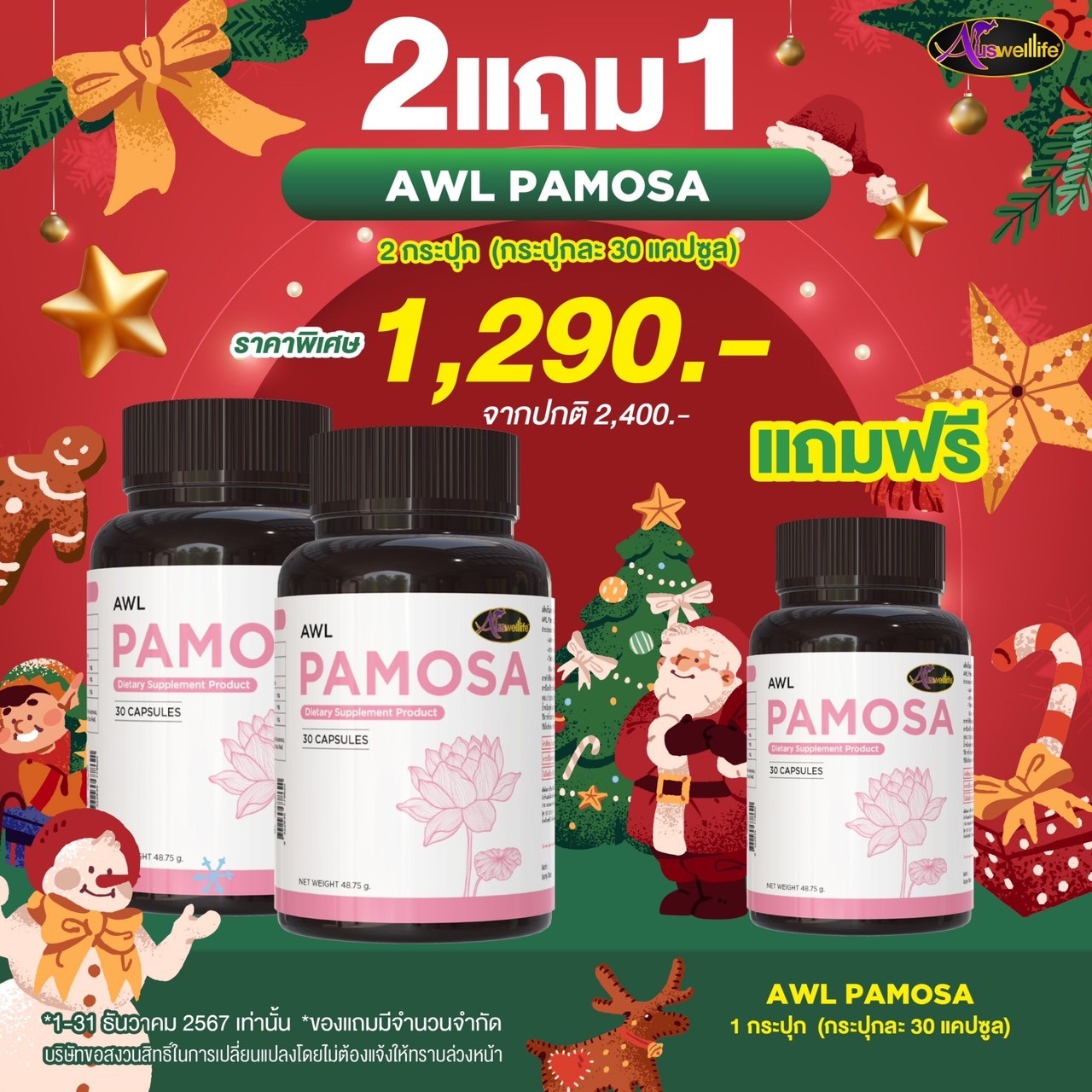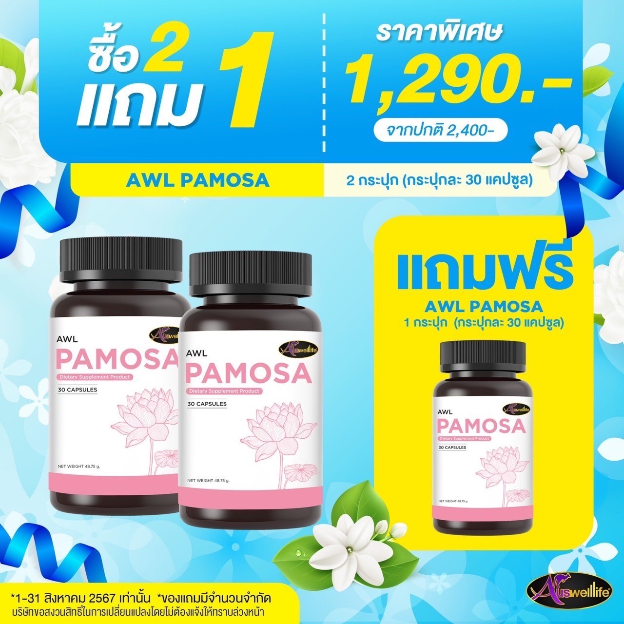 Auswelllife Pamosa ออสเวลไลฟ์ พาโมซ่า บรรจุ 60 แคปซูล