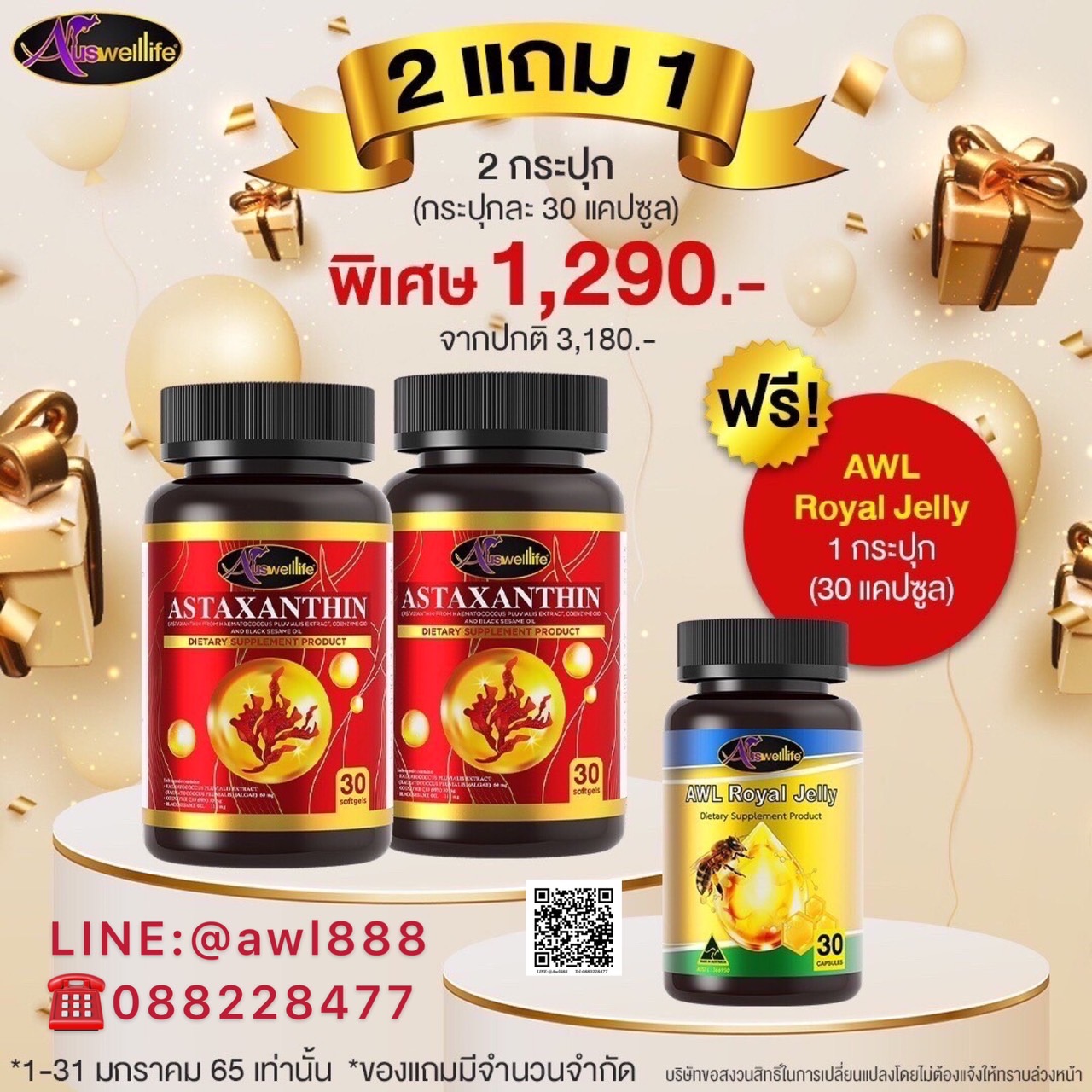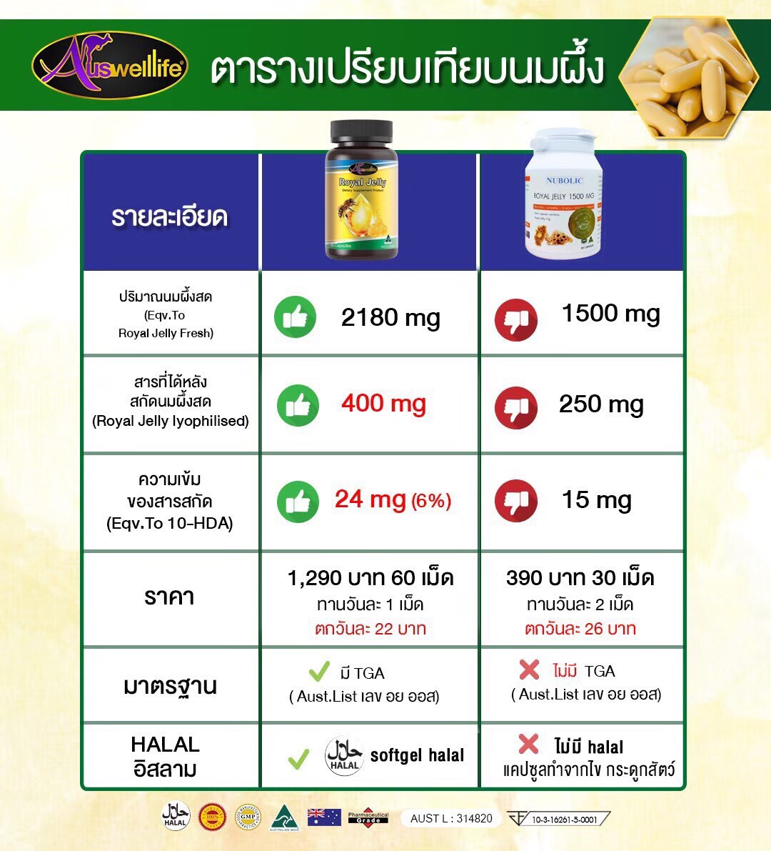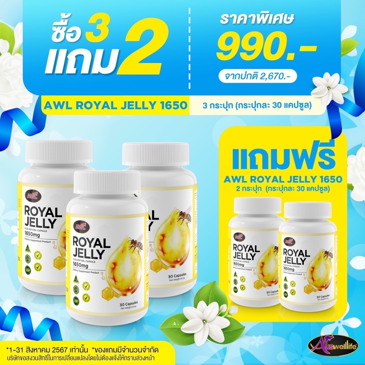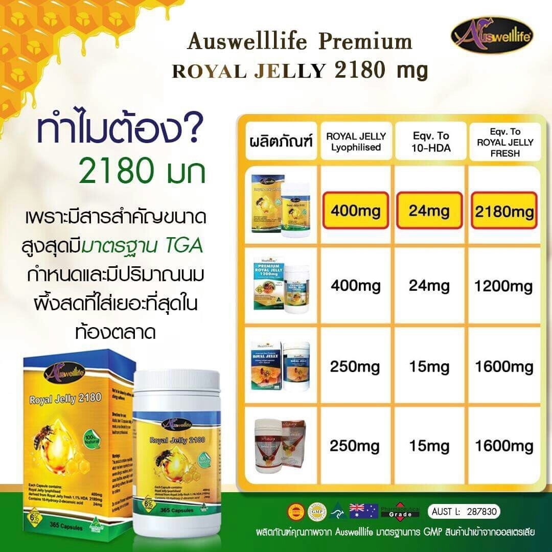 Auswelllife Royal Jelly 2180 mg. ออสเวลไลฟ์ โรยัล เจลลี่ 2180 มก.