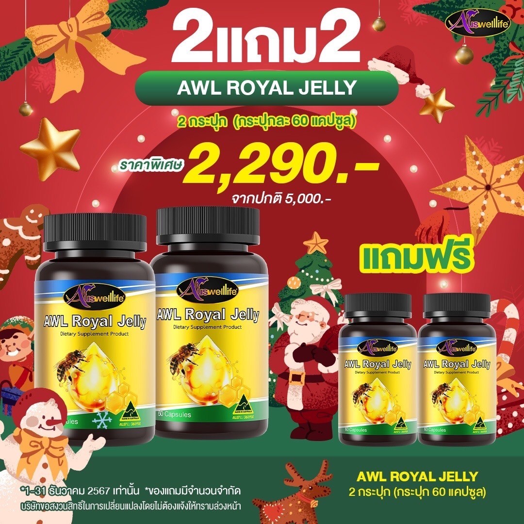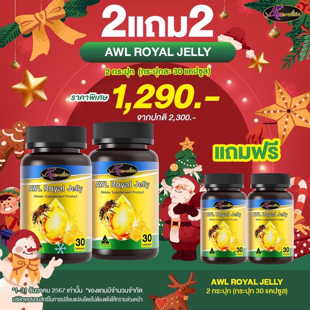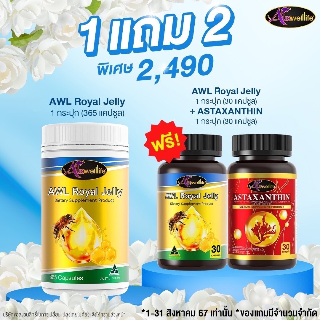 Auswelllife Royal Jelly นมผึ้งคุณภาพสูง มีความเข้มข้นสูง คืนความอ่อนเยาว์บำรุงและฟื้นฟูร่างกาย เหมาะสำหรับผู้ที่ต้องการดูแลผิวพรรณ รักษาฟื้นฟูผิวที่มีปัญหา ลดริ้วรอย ลดการอักเสบ สิว ให้กลับมาสวยใส อ่อนเยาว์
