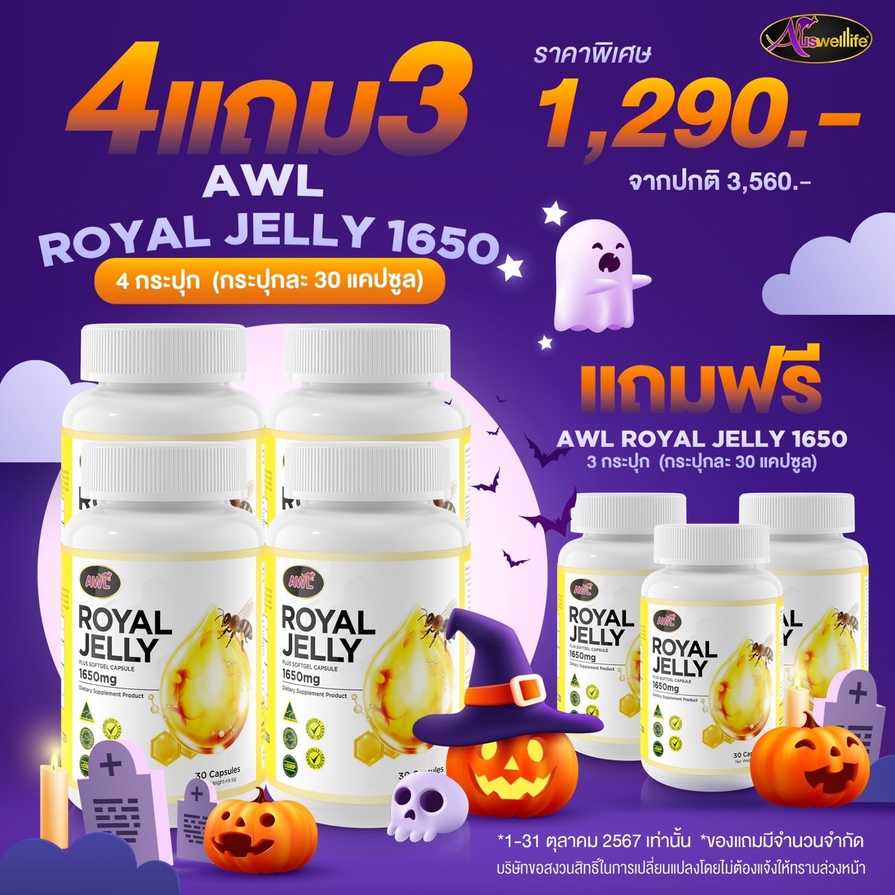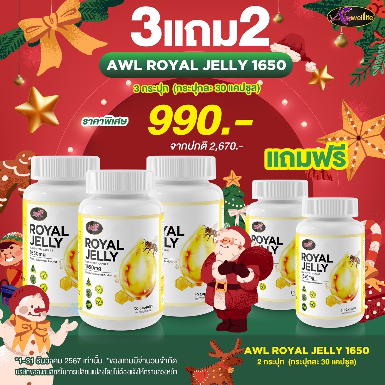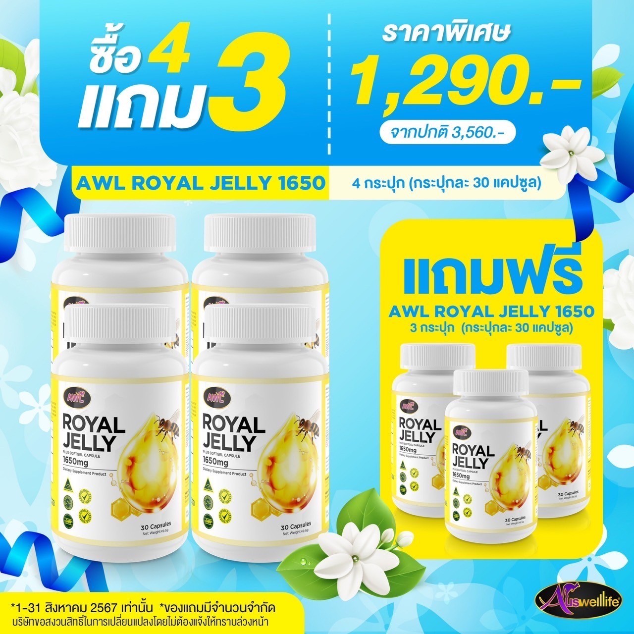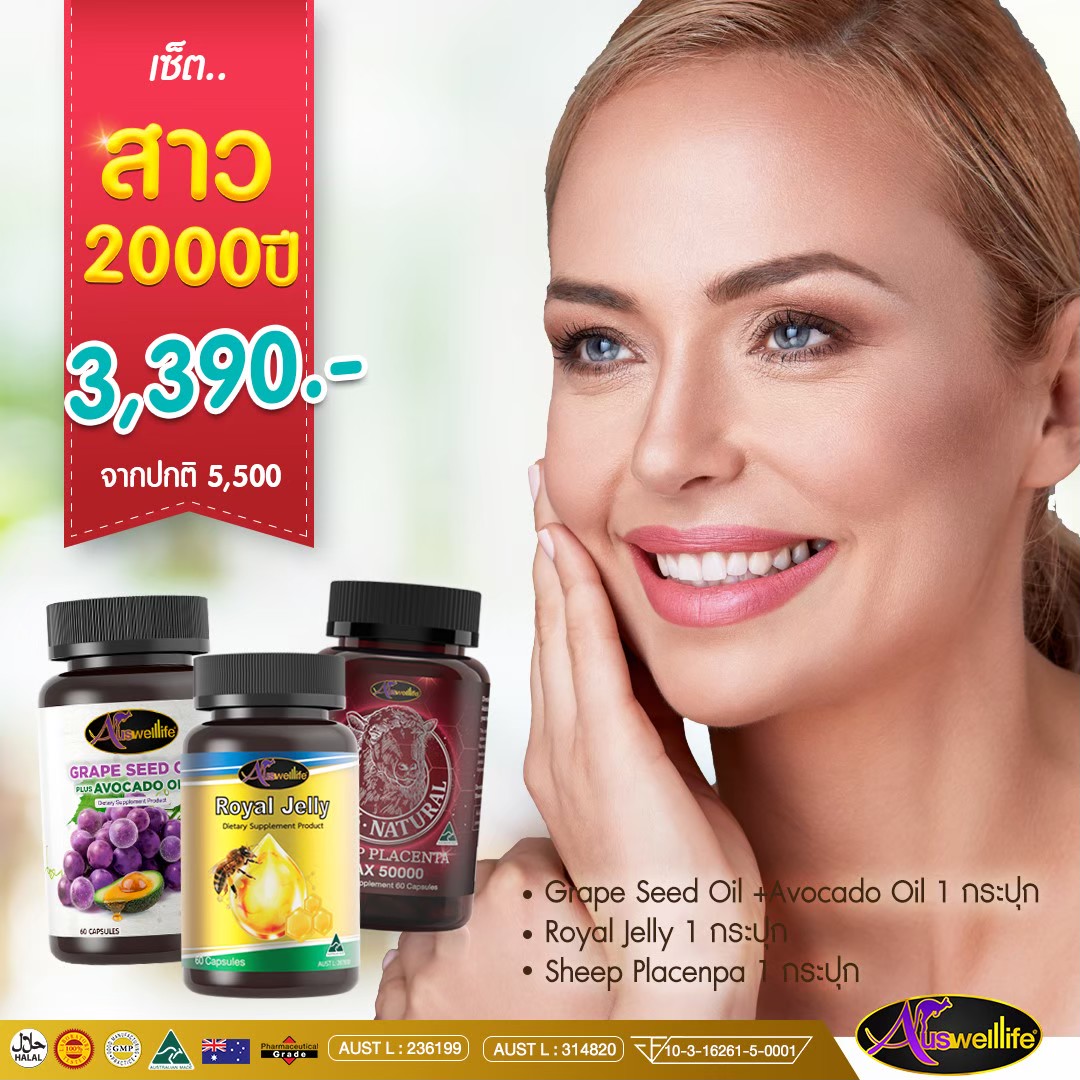 Auswelllife Royal Jelly นมผึ้งคุณภาพสูง มีความเข้มข้นสูง คืนความอ่อนเยาว์บำรุงและฟื้นฟูร่างกาย เหมาะสำหรับผู้ที่ต้องการดูแลผิวพรรณ รักษาฟื้นฟูผิวที่มีปัญหา ลดริ้วรอย ลดการอักเสบ สิว ให้กลับมาสวยใส อ่อนเยาว์