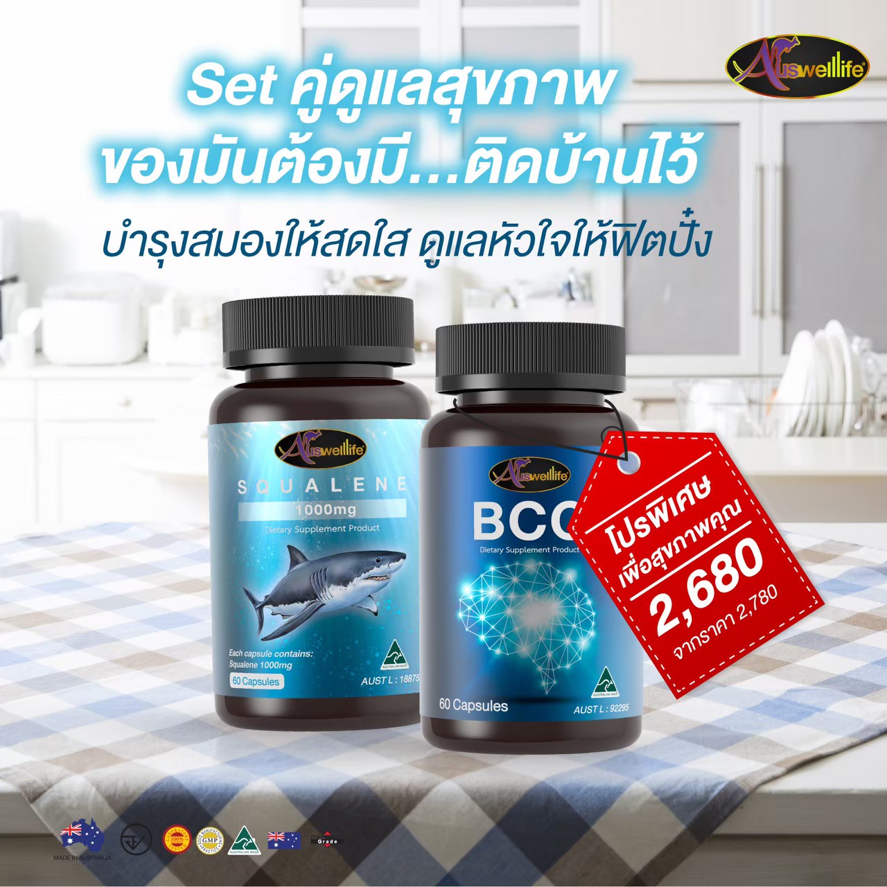 Auswelllife Pure Squalene เป็นน้ำมันสกัดบริสุทธิ์ที่สกัดจากตับปลาฉลาม Tasmanian โดยปลาฉลามพันธุ์นี้อยู่ในน้ำลึก มีออกซิเจนต่ำ จึงทำให้มีการผลิตออกซิเจนหล่อเลี้ยงร่างกายในปริมาณสูงกว่าปลาฉลามน้ำตื้น ซึ่งมี Vitamin A, D, E และกรดไขมันกลุ่มที่เป็นสารต้านอนุมูลอิสระสูง