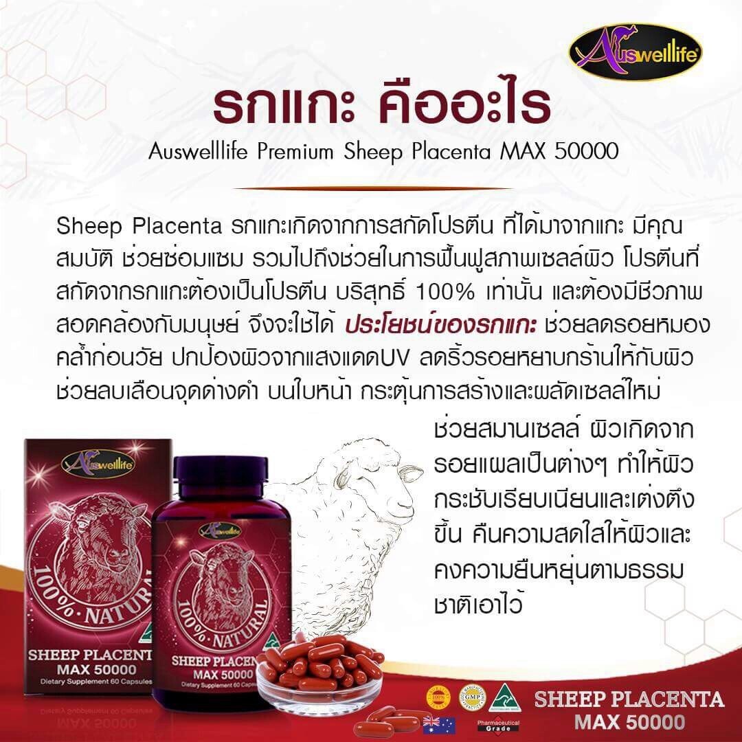 Auswelllife Sheep Placenta Max รกแกะเกิดจากการสกัดโปรตีน ที่ได้มาจากแกะ มีคุณสมบัติ ช่วยซ่อมแซม รวมไปถึงช่วยในการฟื้นฟูสภาพผิว โปรตีนที่สกัดจากรกแกะต้องเป็นโปรตีน บริสุทธิ์ 100% เท่านั้น และต้องมีชีวภาพ สอดคล้องกับมนุษย์ จึงจะใช้ได้